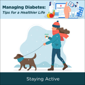 Physical activity helps your body use insulin more effectively and can lower blood sugar levels. Aim for at least 150 minutes of moderate activity per week, such as brisk walking, cycling, or swimming. Even short, frequent bouts of movement can make a difference. Be sure to talk to your healthcare provider before starting a new exercise program, especially if you have complications related to diabetes.
